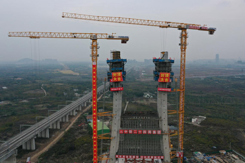 引江濟淮市政橋梁將軍嶺路橋主塔順利封頂