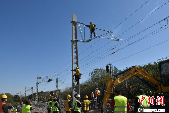據了解,由中鐵十局承建的引江濟淮工程(安徽段)引起寧西、滬蓉高鐵四電改建工程,主要內容包括寧西、滬蓉高鐵改建工程涉及的通信、信號、信息及災害監測,電力及電力牽引供電專業施工。工程工期長,施工任務重、安全風險大,共需要進行5次大的施工撥接。此次撥接為該工程第4次撥接施工,主要是因為由東向西的寧西鐵路跨越引江濟淮主河道,成為河道向北開挖的“攔路虎”,因此要在原有寧西下行鐵路的南側修建一條臨時便線,為引江濟淮工程騰出施工作業面。