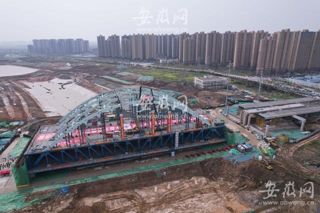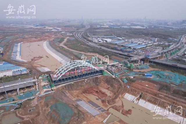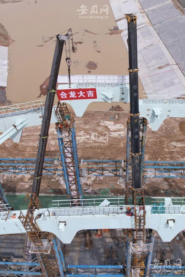 3月27日上午10點多,新安晚報、安徽網、大皖新聞記者在引江濟淮繁華大道橋工程現場看到,主橋拱肋經過吊裝、固定、焊接等流程后,完成了合龍段的施工。