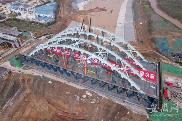 引江濟淮繁華大道橋主橋拱肋合龍
