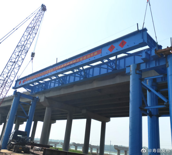 引江濟淮工程S12淮河大橋首片鋼梁架設完成