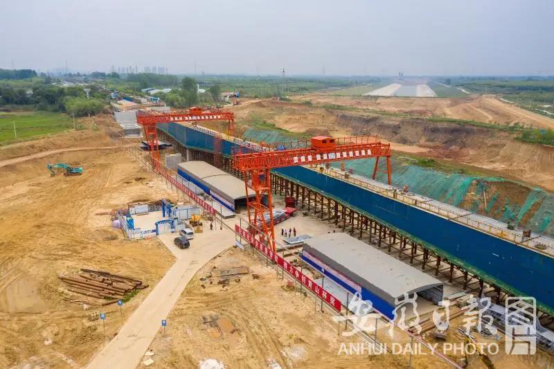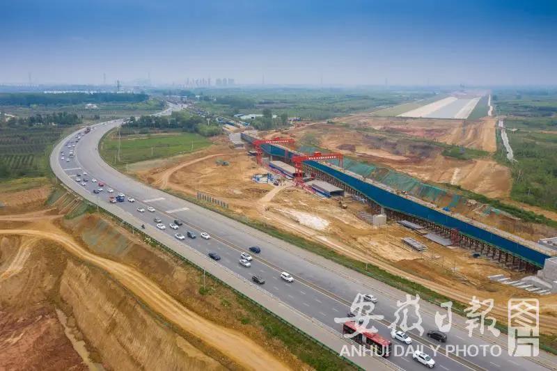 5月1日,航拍合肥市引江濟淮工程G312合六葉公路橋。4月27日,中鐵五局引江濟淮J007-1標項目部承建的G312公路橋3#鋼箱梁橋主跨成功合龍,標志著該橋的施工生產取得階段性勝利。